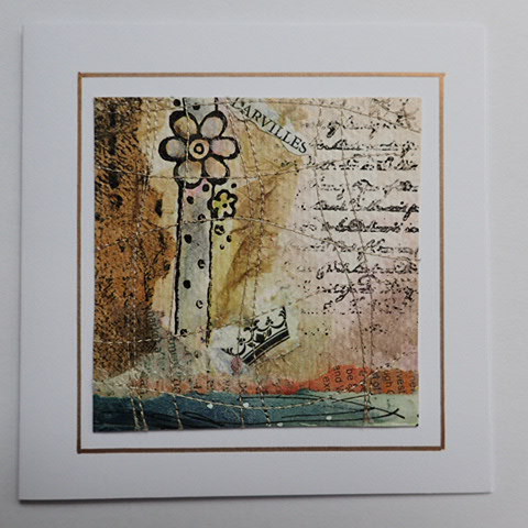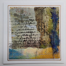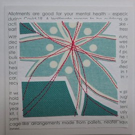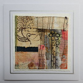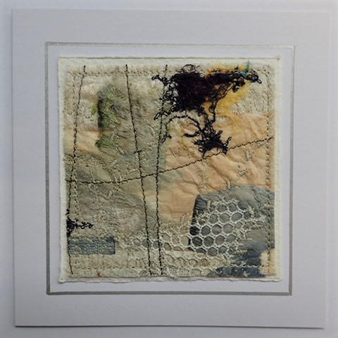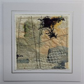 Joining such strong cloth as a tea or coffee bag with recycled materials, old lace and watercolour offcuts creates a totally unique fabric for machine embroidery and block printing.