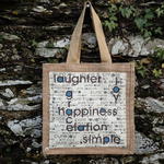 Shown below are a number of individually decorated hessian shoulder/ shopping bags in a range of colours and designs. Prices start at £15.00
