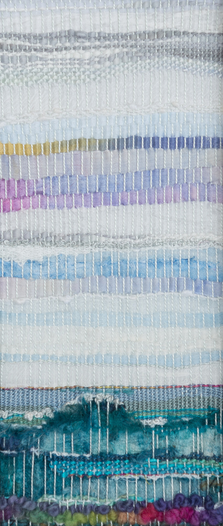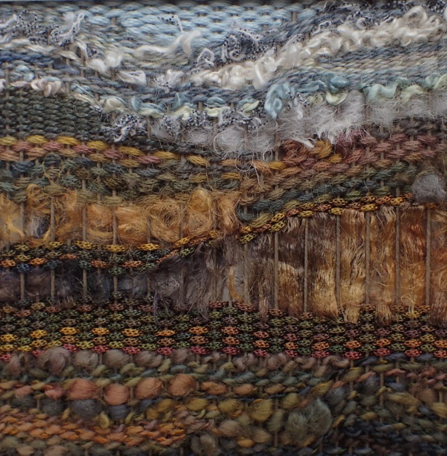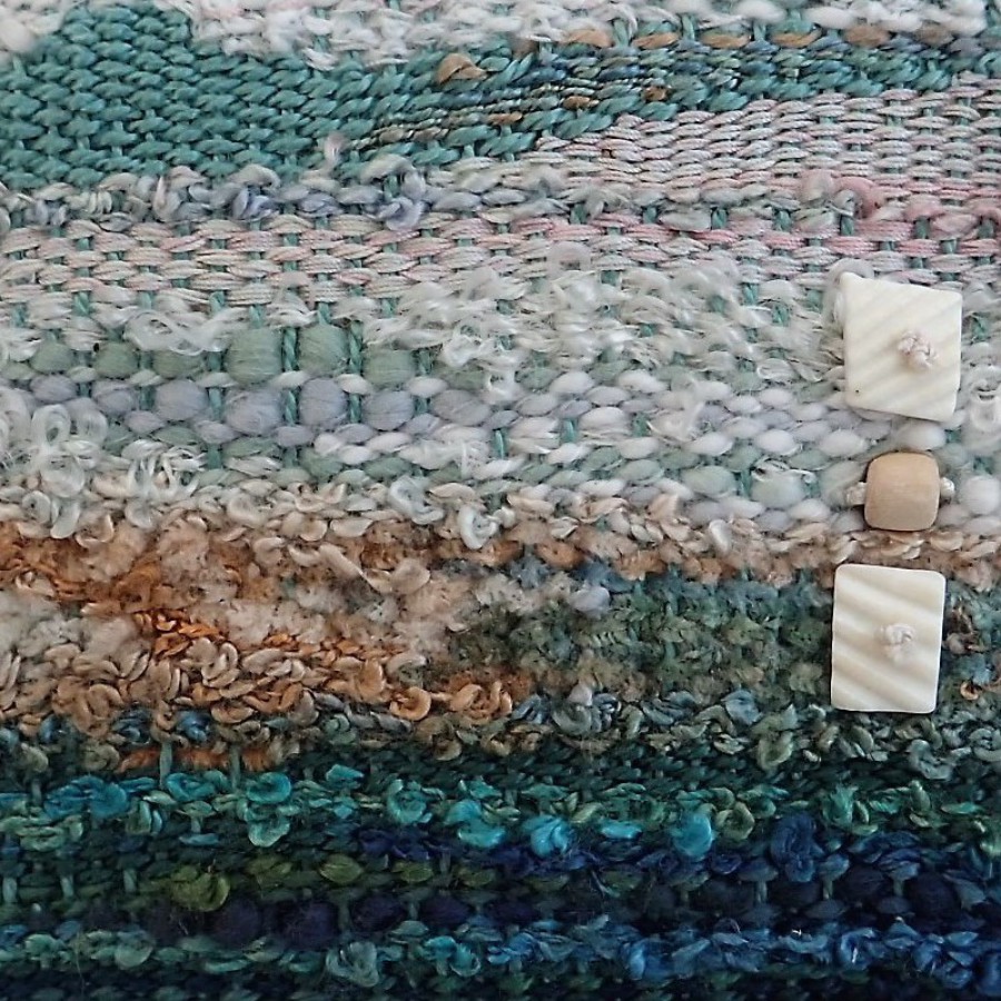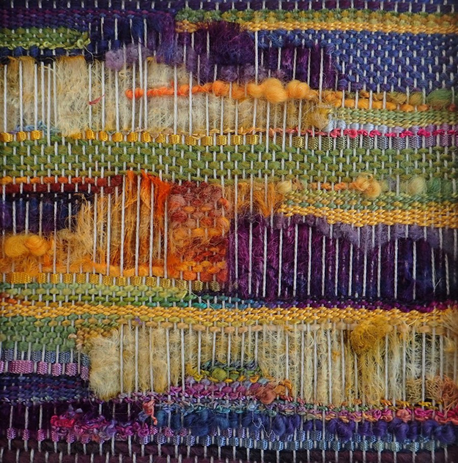 All manner of hand-dyed textured threads, wools and recycled materials along with conventional yarns are used as weft, but by using a colourful warp thread it promotes the design and makes for a more interesting finished item.
